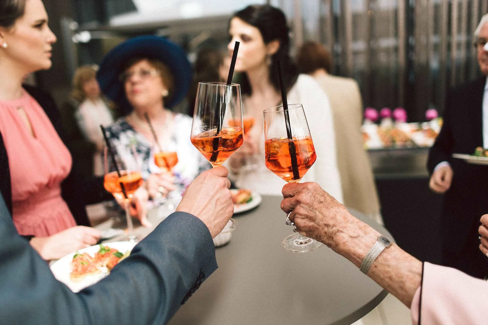 es gab einen eleganten sektempfang auf der wunderschönen terrasse der hochzeitslocation öschberghof. bei häppchen und kalten drinks genossen die hochzeitsgäste den blick über den golfplatz. als hochzeitsfotografin nutze ich diese zeit des hochzeitstages gerne für familienfotos und schöne bilder mit den trauzeugen oder brautjungfern. auch bei dieser hochzeit sind viele gruppenbilder entstanden.